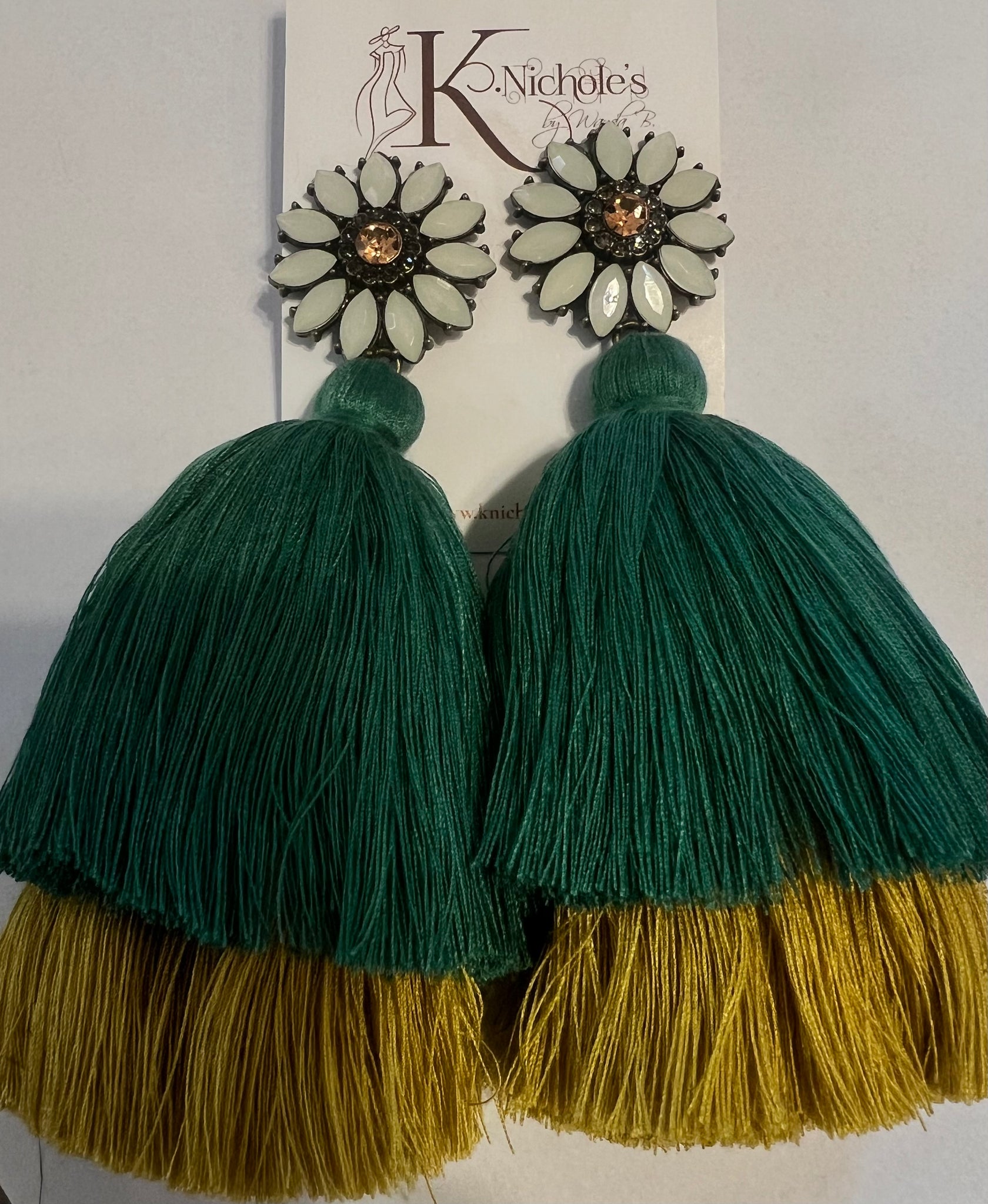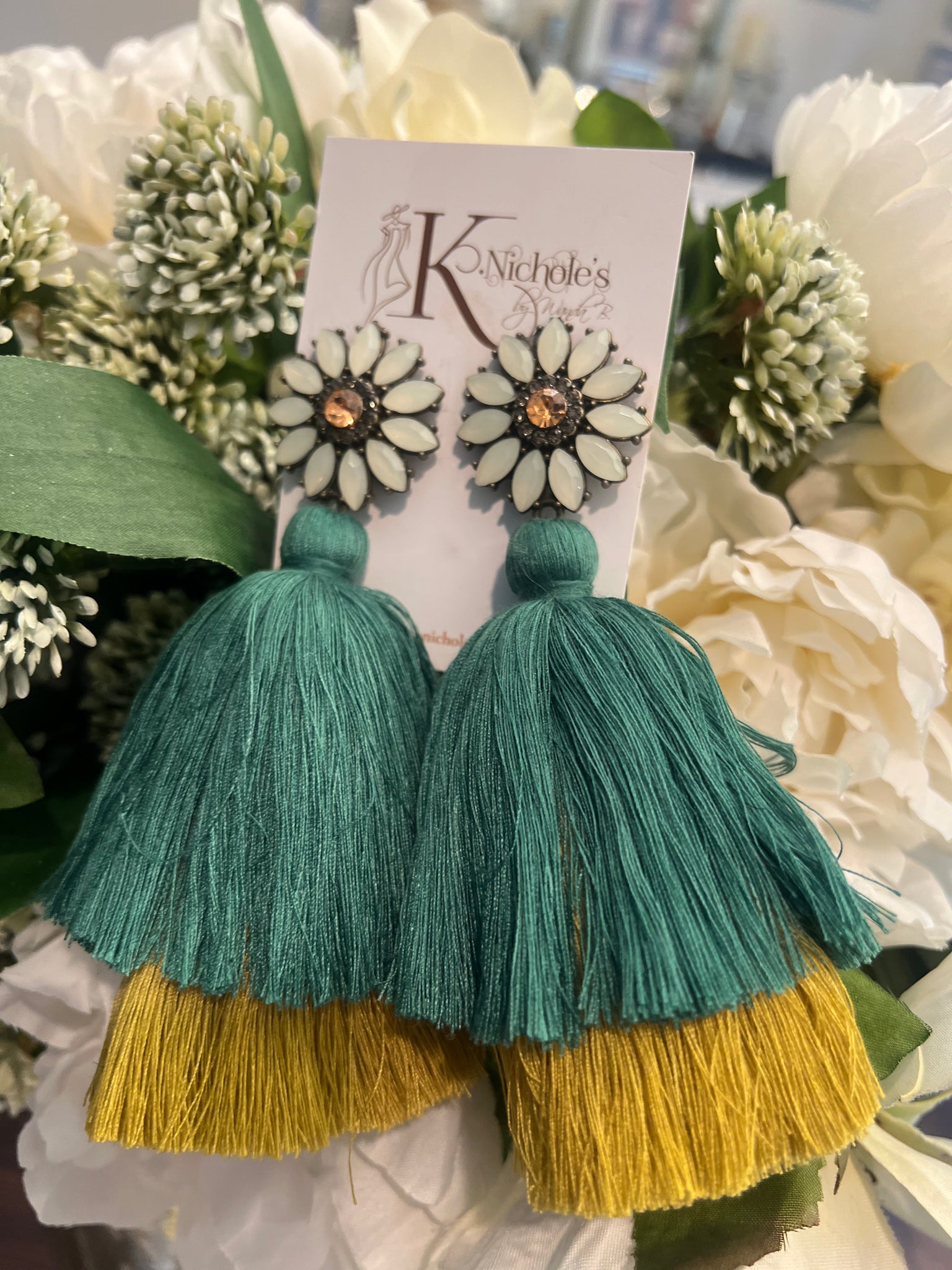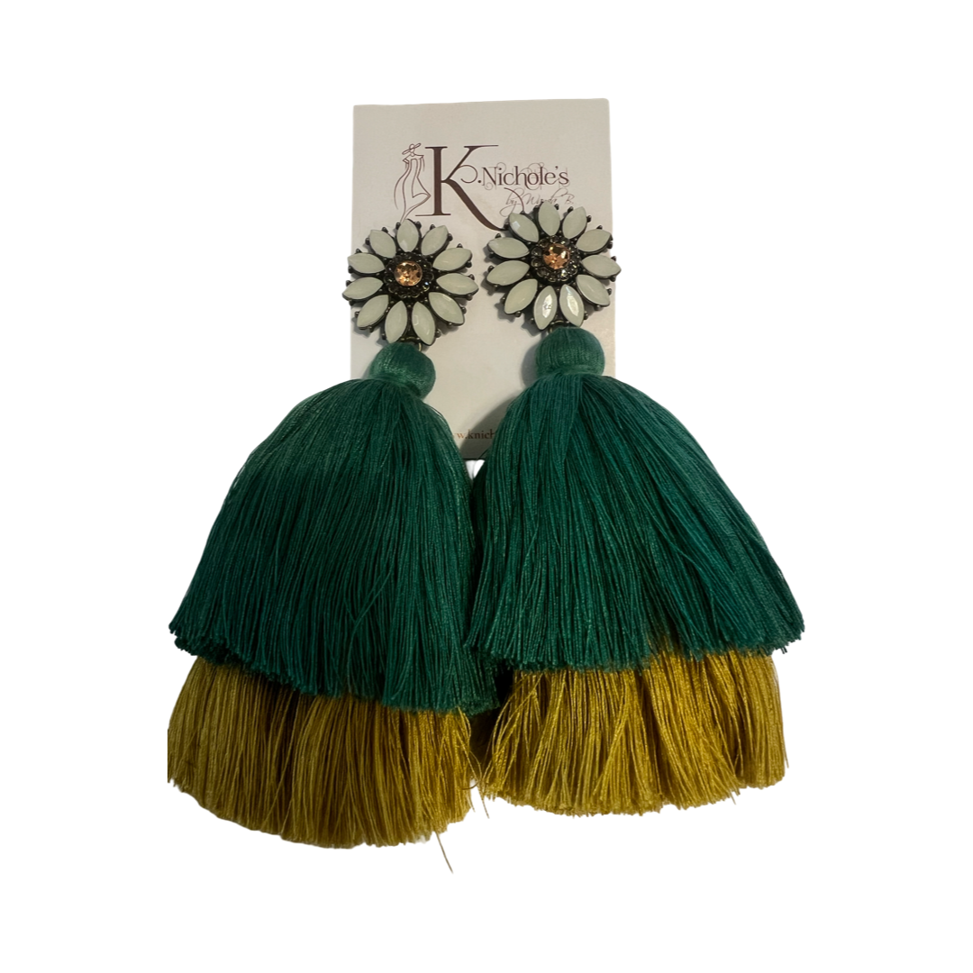 "The Lynette earrings are the perfect accessory for bold and playful fashionistas. With their unique flower post design and fun tassel accents, these earrings will add a touch of whimsy to any outfit. Stand out from the crowd and show off your unique sense of style with Lynette!"