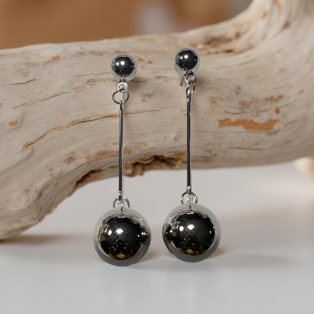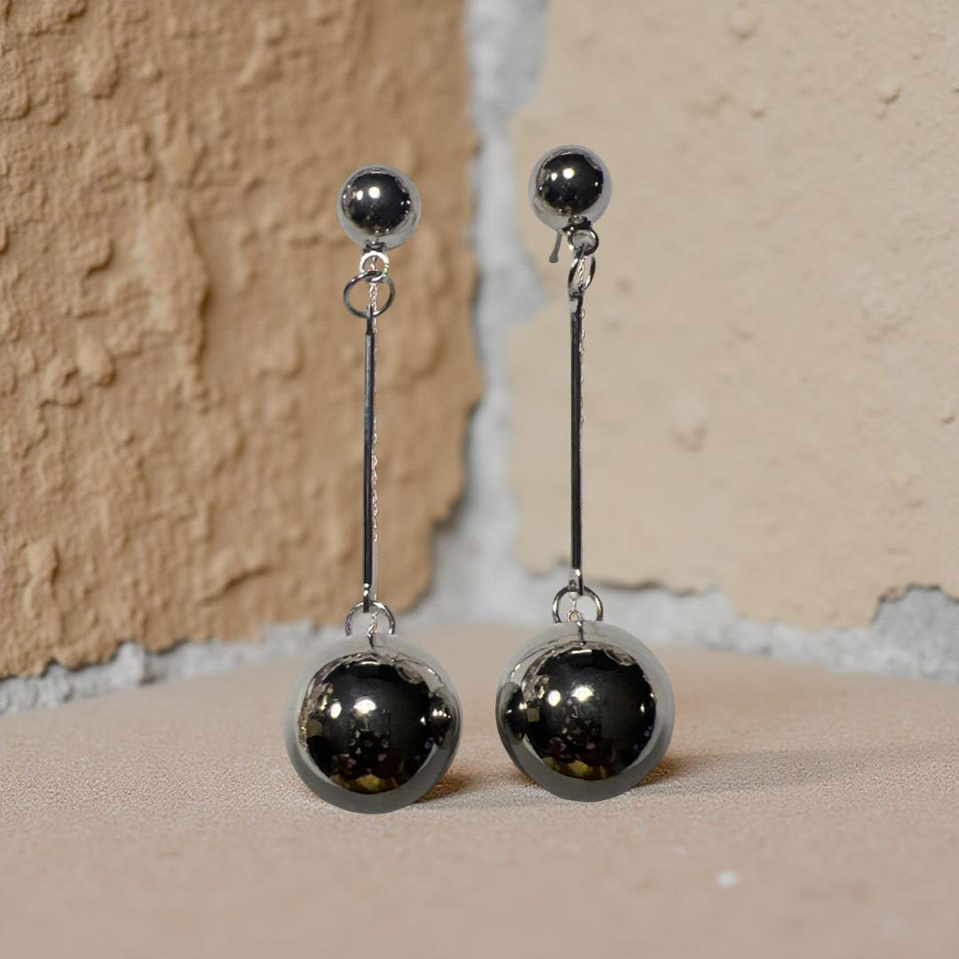 Take your style to new heights with Hannah Drops-Silver! These silver ball drop earrings are sure to make a statement and add a touch of edginess and adventure to any outfit. Elevate your look and dare to stand out with Hannah Drops-Silver!