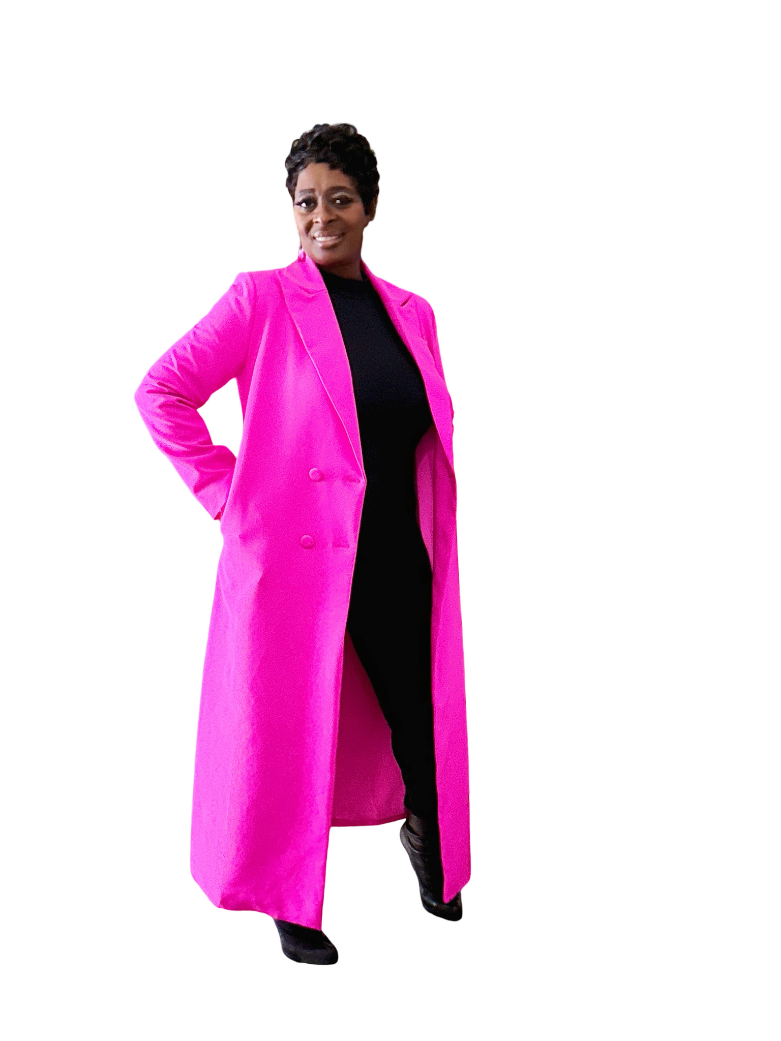 Introducing the Santana Sleek Coat, a stunning double breasted coat in vibrant fuschia. Crafted with a modern design and high-quality material, this coat adds a touch of elegance to any outfit. Elevate your style with this eye-catching piece and stay warm in style.